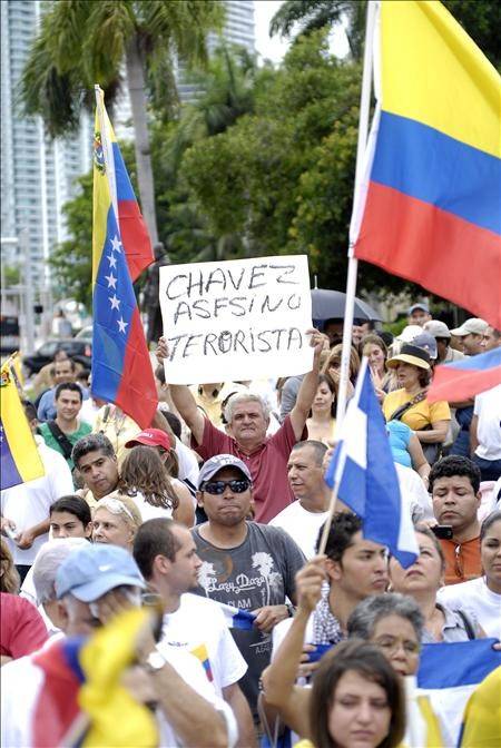 En Miami, más de 2.000 latinoamericanos desafiaron a la lluvia y acudieron a la concentración, realizada frente a una estatua del prócer venezolano Simón Bolívar, contra "la injerencia y el expansionismo chavista en los pueblos latinoamericanos".