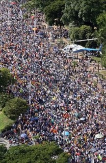 LD (EFE) Las más de quinientas mil personas que asistieron al mitin de cierre de campaña del "Bloque del No" pidieron a gritos a los venezolanos que este domingo acudan masivamente a votar en contra del referéndum constitucional que promueve el régimen de Hugo Chávez y que, según los principales partidos de oposición, "otorgaría poderes imperiales" al presidente. La consigna más coreada fue "¡Y no, y no nos da la gana una dictadura a la cubana!".
