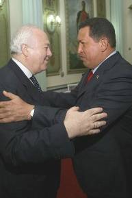 L D (Europa Press) Tras la reunión mantenida entre Moratinos y el presidente venezolano, Hugo Chávez, el ministro español aseguró que las relaciones bilaterales entre ambos países se encuentran normalizadas y que han decidido pasar página tras el incidente que protagonizaron el Rey don Juan Carlos y Chávez, cuando el Jefe de Estado español le espetó el famoso "¿Por qué no te callas?" en la pasada Cumbre Iberoamericana de Santiago de Chile en noviembre pasado.