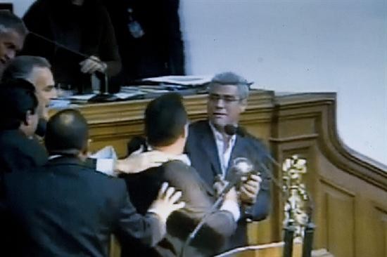 La tensión que acompaña los debates desde la vuelta de la oposición al Parlamento, el pasado 5 de enero, se desbordó este jueves cuando el diputado opositor Alfonso Marquina protagonizó un enfrentamiento físico con un diputado del oficialista Partido Socialista Unido de Venezuela (PSUV). Marquina se dirigió hacia la Presidencia para protestar por los gritos que venían de la parte del público, donde se encontraba un bullicioso grupo de seguidores del Gobierno.