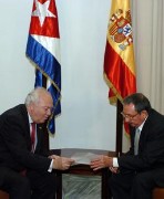 LD (Agencias) Moratinos terminó la madrugada de este miércoles su primera visita oficial a Cuba su encuentro con el presidente en funciones, Raúl Castro, en quien encontró "comprensión" y "voluntad de trabajar juntos", y a quien entregó una nota manuscrita del Rey Juan Carlos interesándose por la salud del Fidel Castro, convaleciente desde hace ocho meses de una enfermedad declarada "secreto de Estado".