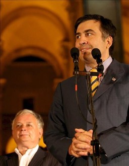 Acompañado por los presidentes polaco, Lech Kaczynski; ucraniano, Víctor Yúschenko; lituano, Valdas Adamkus; estonio, Toomas Ilves; y por el primer ministro letón, Ivars Godmanis, Saakashvili indicó que "el desfiladero de Kodori (Abjasia) fue bombardeado por aviones rusos. Pido una investigación internacional para establecer de quién son esas bombas. Para que no nos acusen a nosotros". Además, indicó que "las tropas terrestres rusas avanzan en diversas direcciones, por ejemplo hacia Poti. Junto al puerto de Poti, en el mar, los rusos destruyeron nuestros buques".