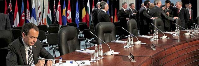 4 de abril de 2008. Por aquellas fechas se celebraba una cumbre de la OTAN en Bucarest. Lamentablemente la noticia de aquel cónclave nada tuvo que ver con la política de defensa del Tratado del Atlántico Norte, o sobre los escudos antimisiles, o los problemas en el conflicto de Afganistán. En España no se hablaba de otra cosa que de las imágenes de Zapatero sólo y dormido en una mesa vacía y a cierta distancia del grupo de líderes de la alianza debatiendo informalmente. De la Vega justificó al presidente y Moratinos trató de quitar hierro al asunto diciendo que "a veces le pillan a uno mirando hacia otro lado".