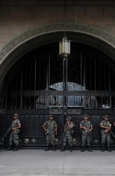 Antes de que el gobernante declarara ante los periodistas, unidades del Ejército tomaron el control del Palacio Nacional de la Cultura, antigua casa de Gobierno y donde se suelen celebrar los actos oficiales, así como de la Casa Presidencial, y acordonaron ambos edificios, situados en el centro histórico de la capital.