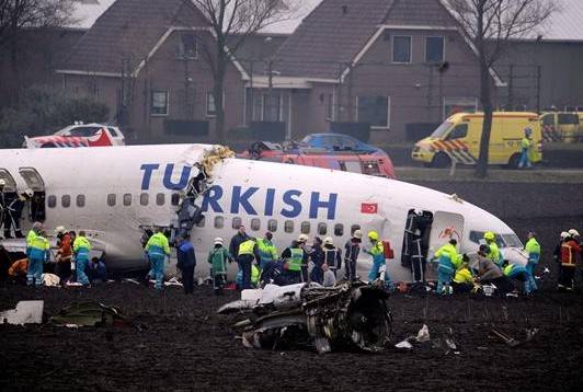 El aparato, un Boeing 737 procedente de Estambul, se partió en tres tras tocar tierra fuera de la pista de aterrizaje y muy cerca de una carretera, sin que, por las imágenes mostradas por las televisiones, se declarara un incendio. Las imágenes muestran la cola del aparato y una parte del fuselaje rota. Por su parte, el aeropuerto de Schiphol confirmó que había habido un accidente hacia las 10:30 horas e informó de que por el momento están suspendidos todos los vuelos.