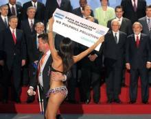LD (EFE) Evangelina Cardoso se presentó como "reina del carnaval de la ciudad de Gualeguaychú" después de haber sorprendido en bikini a los sesenta jefes de Estado y de Gobierno que posaban para la foto oficial de la Cumbre de Viena. La activista de Greenpeace se acreditó como periodista y así pudo pasar todos los controles de seguridad e ingresar en el centro de congresos del "Reed Messe Wien", sede del foro.