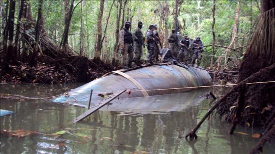 Sin duda el hallazgo sorprende no sólo por los métodos cada vez más sofisticados que utilizan los narcotraficantes sino también por el costo que representa. Los agentes antidroga de EEUU y Ecuador encontraron este submarino en la zona de Esmeraldas, cerca al Océano Pacífico y de la frontera con Colombia. Tiene 33 metros de eslora, mide casi tres de alto y está construido con fibra de vidrio y otros materiales compuestos y pintado de camuflaje.