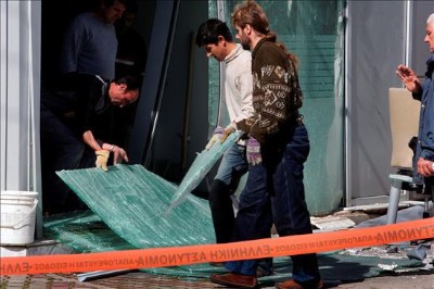 L D (EFE) Según informó el periódico digital Ta Nea, el artefacto estalló sobre las 3:00 horas (2:00 en España) de la madrugada y provocó importantes desperfectos en la oficina bancaria y en varios automóviles estacionados en las cercanías. La autoría del atentando aún no ha sido reivindicada. Según el diario Zougla, las fuerzas antiterroristas griegas examinan las imágenes registradas por las cámaras de seguridad del banco.