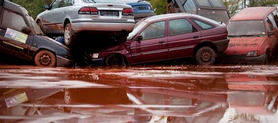 Alrededor de 40 kilómetros cuadrados en los que viven 7.000 personas han quedado anegados por una capa de varios centímetros de fango rojo contaminante, altamente venenoso, que ha causado un desastre medioambiental sin precedentes en el país.