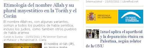En esa misma web que alberga semejantes contenidos se pueden ver dos banners publicitarios del Gobierno de España. Uno de la Presidencia del Gobierno y la Alianza de Civilizaciones que remite a la página del Plan Nacional para la Alianza de Civilizaciones.