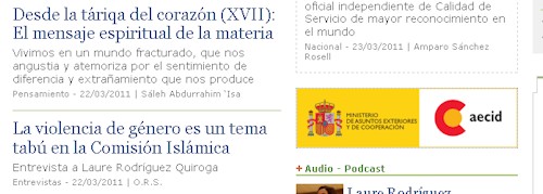 El segundo anuncio gubernamental que encontramos en la web es de la Agencia Española de Cooperación Internacional –llamativo, ya que la página es de la Junta Islámica española– perteneciente al Ministerio de Asuntos Exteriores de Trinidad Jiménez. Al pinchar se abre la página de dicha agencia.