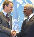 Zapatero se encuentra en Nueva York para asistir a la presentación, por parte del secretario general saliente, Kofi Annan, de la iniciativa "Alianza de civilizaciones". El objetivo de la visita es poner de manifiesto la "centralidad del multilateralismo efectivo" como eje de la política exterior de España, además de reiterar el compromiso del Gobierno español con el sistema de instituciones que representan la paz, la cooperación y la legalidad internacional.