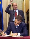 Durante la rueda de prensa posterior al almuerzo ofrecida conjuntamente por Zapatero y Chirac, el primer ministro francés, tras agradecer su acogimiento a la ciudad de Zaragoza y la Comunidad de Aragón, resaltó el “momento excelente en todos los ámbitos” de la relación entre Francia y España. “En la Unión Europea somos dos gobiernos empeñados en la ratificación de la Constitución europea” y para ello “vamos a celebrar un reférndum”, dijo y añadió que “Francia y España quieren una Europa fuerte, unida y constitucional, algo imprescindible para mantener un orden internacional en equilibrio y una Europa fuerte”. Zapatero anunció el próximo 11 de febrero una reunión en Barcelona entre España, Francia y Alemania para dar un mitin de apoyo al sí en el referéndum sobre la Constitución Europea convocado por el Gobierno español para el día 20 de ese mes.
