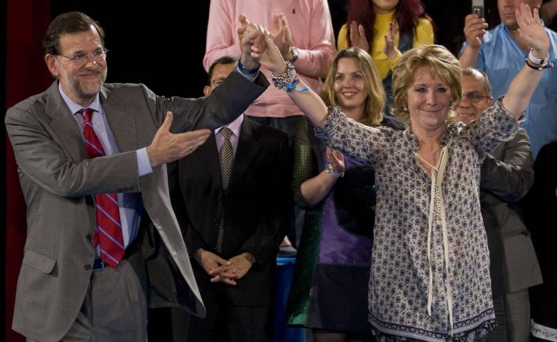 Tras su intervención, el líder nacional del PP arrancó su alocución defendiendo el trabajo de Aguirre en la legislatura que ahora termina: "Presidenta extraordinaria de la Comunidad de Madrid", le presentó. "Enhorabuena", le dijo, por dos ocasiones. Los asistentes entonces volvieron a gritar el ensordecedor "presidenta, presidenta".