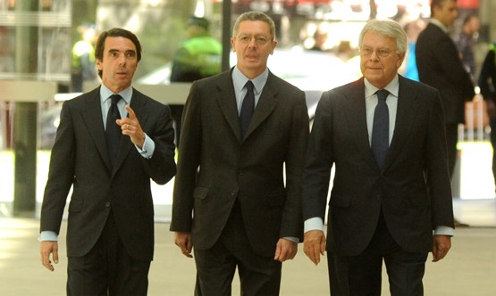 Los ex presidentes del Gobierno Felipe González y José María Aznar, muy partícipes en esta campaña electoral, se han vuelto a ver cara a cara. El primero no dudó en cargar contra el segundo en más de una ocasión estos días, mientras que el líder de FAES optó por centrar sus energías contra el Gobierno y las políticas socialistas.