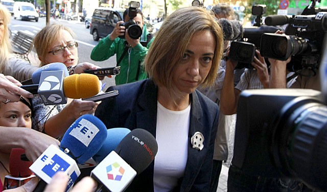 Es precisamente la ministra de Defensa la única que ha concedido declaraciones a los medios de comunicación. En vez de entrar con el coche al garaje de la sede decidió hacer a pie los últimos metros.