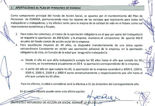 De tal modo que, resumiendo, Egmasa destina una importante cantidad de dinero al fondo de pensiones de la empresa que está gestionada por una empresa que está participada por Comisiones Obreras y UGT.