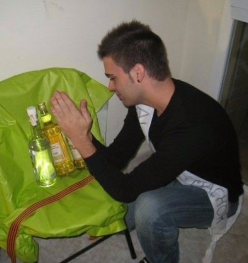 Concretamente, el partido que preside Francisco Camps ha divulgado una fotografía en la que se puede ver al diputado, de 26 años, haciendo que reza rodeado de botellas de alcohol. La instantánea (que no es reciente) está colgada en su espacio Facebook, según las fuentes consultadas.