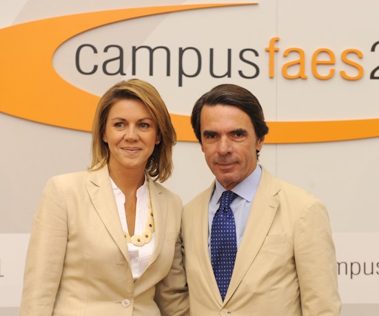 En la inauguración del Campus FAES volvió a dar una "lección", en palabras de varios dirigentes populares. "Lo que está en marcha, y que no se engañe nadie, en el País Vasco y Navarra es un proceso de legitimación del terrorismo, de exaltación de los asesinos, de exculpación y borrado de sus crímenes", aseguró Aznar, que hoy contó con la compañía de María Dolores de Cospedal, con la que fraguó una especial relación en campaña, trasladándose a Castilla-La Mancha en varias ocasiones.