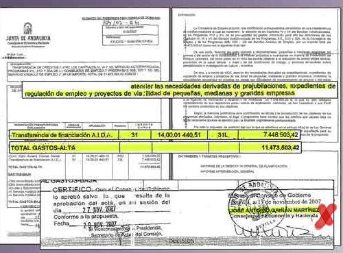 El Consejo de Gobierno de la Junta de Andalucía modificó el 27 de noviembre de 2007 el presupuesto del programa 31L de la Consejería de Empleo y tal modificación consta en el expediente 704/07-EH, que no fue publicado en el BOJA. El expediente fue firmado por el entonces consejero de Economía, José Antonio Griñán, el 15 de noviembre de 2007.