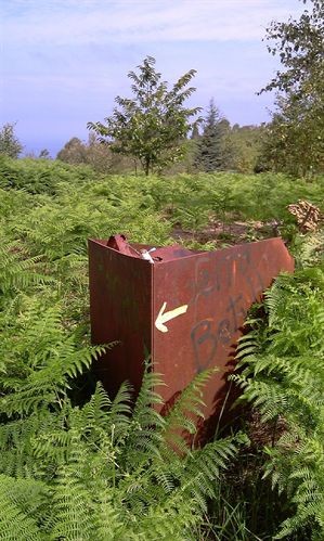 Este lugar fue pasto de un incendio hace unos años, por lo que la maleza y los helechos habían colonizado el entorno del monolito que recuerda a Fernando Múgica Herzog, que fue asesinado el 6 de febrero 1996 de varios disparos cuando caminaba por una céntrica calle de la capital guipuzcoana.