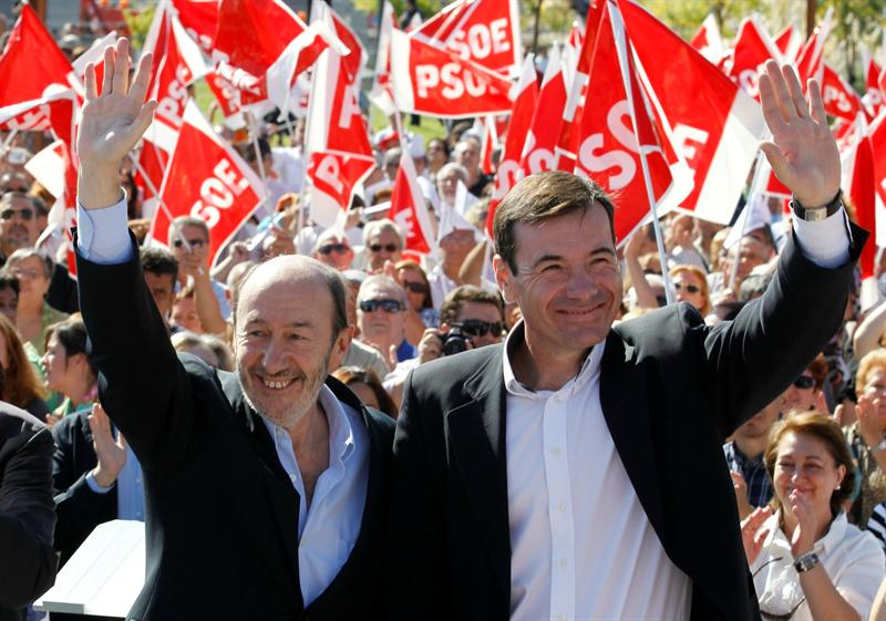 El candidato del PSOE ha protagonizado un acto de campaña en Alcorcón (Madrid) donde ha arremetido contra el PP, en especial contra Esperanza Aguirre. Ha estado acompañado del líder de los socialistas madrileños, Tomás Gómez, a quien dedicó agrias palabras hace justo un año cuando apoyó a Trinidad Jiménez en las primarias del PSM.