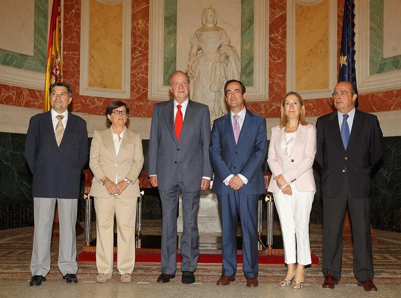 A las 14:00 horas comenzaba el almuerzo “especial” que han mantenido las altas instancias del Estado en el Congreso de los Diputados. Un encuentro como el que celebran cada mes el presidente del Gobierno, José Luis Rodríguez Zapatero; el del Congreso, José Bono; Senado, Javier Rojo; el del CGPJ y el Tribunal Supremo, Carlos Dívar y el del Tribunal Constitucional, Pascual Sala, y en el que el turno de anfitrión va rotando entre las diferentes sedes de los poderes del Estado. La novedad en esta ocasión: la presencia de su Majestad el Rey Don Juan Carlos. Según fuentes parlamentarias consultadas por este periódico, “a Bono le pareció buena idea invitar al Rey, se lo propuso y Don Juan Carlos accedió” a participar de forma inédita en el encuentro, que coincide con las múltiples comidas de despedida que, desde hace meses, celebra Bono y por las que han pasado portavoces parlamentarios, letrados, ujieres, secretarias y personal de limpieza y asistencia del Congreso.