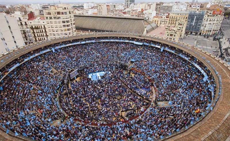 El torero Mariano Rajoy dio la vuelta al ruedo y salió por la puerta grande. Con todas las encuestas a su favor, el candidato del PP se dio un homenaje en el coso valenciano, con una faena de primera. No es que sus estoques dialécticos fueran brillantes o novedosos, es que la fotografía se comía todo lo demás. Más de 20.000 militantes y simpatizantes, en una plaza que se caía, fueron suficientes para constatar que el virtual presidente ya acaricia La Moncloa.