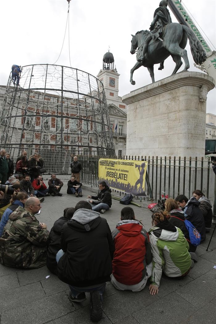 A penas una veintena de miembros de la llamada "Asamblea Popular de Alcorcón del movimiento 15M" se han congregado este sábado en la Puerta del Sol en la que han denominado "jornada de reflexión colectiva" sobre las elecciones.