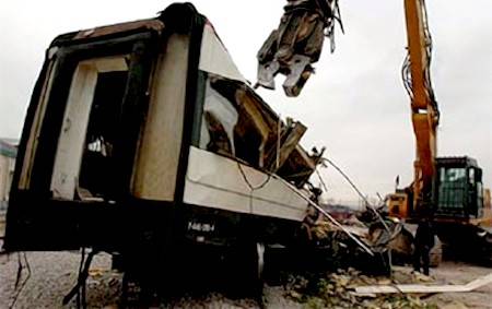El entonces director general de EMFESA declaró también que los vagones de la calle Téllez no se podían mover (debido al estado en que se encontraban), por lo que hicieron "un predesguace, cortando si era posible el vehículo en dos partes y, si no era posible porque no entraban las cizallas, en tres trozos. Una vez cortada cada sección, se levantaba con una grúa y se metía en un trailer". Los trozos de trenes fueron conducidos a la explanada de Santa Catalina, al taller de Villaverde Bajo.