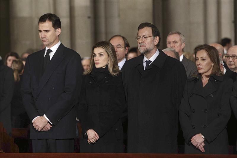 Las numerosas personas congregadas en las cercanías del templo han aplaudido la llegada de los príncipes, quienes también han sido recibidos entre aplausos al acceder a la nave central de la catedral y, antes de ocupar su puesto en el primer banco, ante el altar, han dado el pésame a los familiares del presidente fundador del PP.