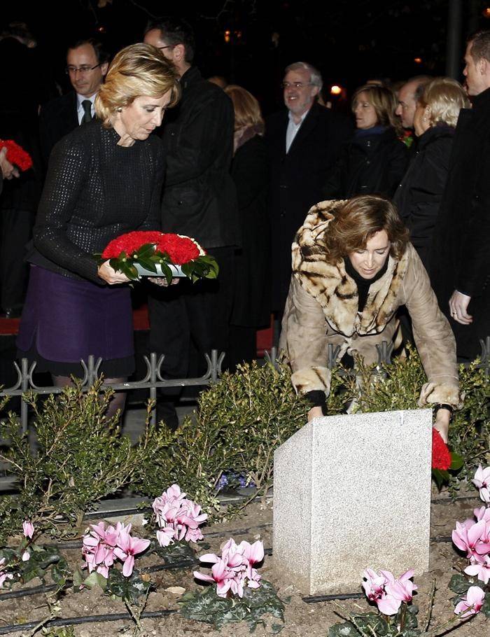 Dirigentes del PP como Esperanza Aguirre, Jaime Mayor Oreja y Antonio Basagoiti han recordado este jueves a Gregorio Ordóñez en una ofrenda floral en el jardín madrileño que lleva el nombre del concejal de San Sebastián asesinado por ETA hace 17 años, que ha servido para reclamar que se recupere la dignidad democrática.