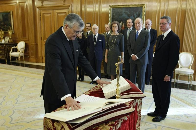 Al acto, que ha tenido lugar en el Salón de Audiencias, han asistido la vicepresidenta del Gobierno, Soraya Sáenz de Santamaría, y el presidente del Tribunal Supremo y el CGPJ, Carlos Dívar, así como el ministro de Justicia, Alberto Ruiz-Gallardón, quien ha actuado como notario mayor del Reino al dar fe acompañado por el recién nombrado director general de los Registros y del Notariado, Joaquín José Rodríguez Hernández.