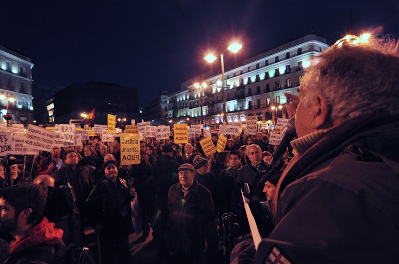 La concentración, que comenzó a las siete de la tarde, tuvo lugar en la zona central de la Puerta del Sol, en torno a la estatua ecuestre de Carlos III, en la cual se desplegó una pancarta con una imagen del juez, en la que se puede leer "Contra los juicios de la vergüenza".