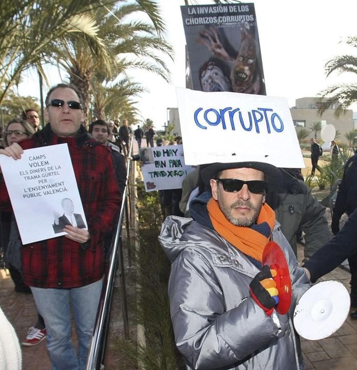 Camps, en su trayecto desde el aparcamiento hasta el edificio académico, ha escuchado cómo un hombre le pedía que pagara sus trajes. Dirigiéndose a éste, Camps le ha instado a que le pidiera disculpas y a facilitarle su identidad, pero no ha obtenido respuesta. Por contra, ha recibido el apoyo de distintos cargos públicos del PP que han querido asistir a la lectura de su tesis, como el presidente de las Cortes valencianas, Juan Cotino.