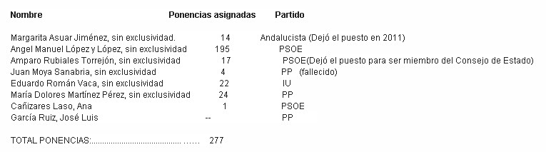 La relación de consejeros y ponencias según la propia base de datos del Consejo desde mayo de 2005, fecha de renovación del Consejo hasta el martes es la siguiente: