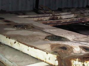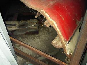 Y en esta otra secuencia de imágenes podemos ver la chatarra contenida en el cobertizo. Pueden observarse perfectamente distintas partes del vagón original.
