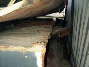 Y estas otras imágenes muestran detalles de ese mismo cobertizo. Como puede apreciarse, se encuentra en muy mal estado y se atisba sin problemas lo que hay en el interior.