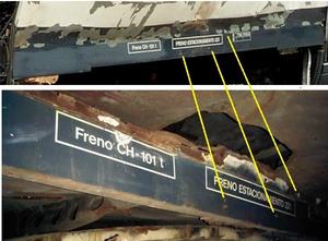 Para comprobar si los restos almacenados en ese cobertizo se corresponden, en efecto, con aquel vagón en el que estalló una bomba el 11-M, podemos comparar esta fotografía 16 con la fotografía 1, que muestra el aspecto que tenía el tren de Santa Eugenia el 17/3/2004, cuando se encontraba en la estación de clasificación de Vicálvaro.