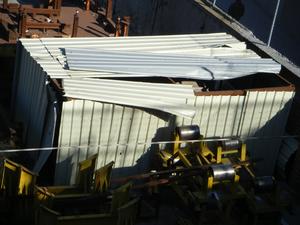 Pocos días después de acabar el juicio, en la empresa Tafesa se construyó un cobertizo ("de la noche a la mañana", dicen sus trabajadores) y esos restos del foco de explosión fueron llevados a él. Como muestran estas dos fotografías aéreas, la construcción del cobertizo tuvo lugar entre el 21/7/2007 y el 19/10/2007, ya que en la primera de las fotos no aparece el cobertizo y en la segunda sí. El juicio del 11-M había quedado visto para sentencia a las 22.40h del día 2 de julio.