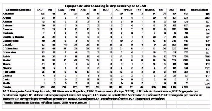 37.- Andalucía, muy por debajo de la media española en equipos de alta tecnología sanitaria.
