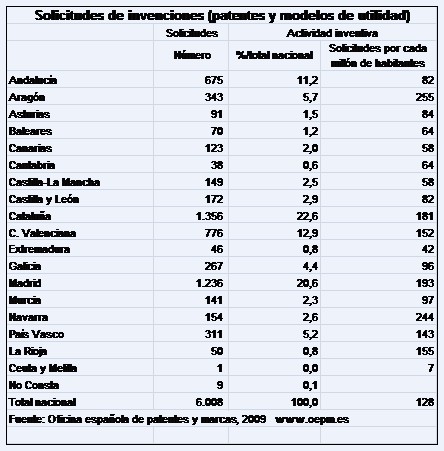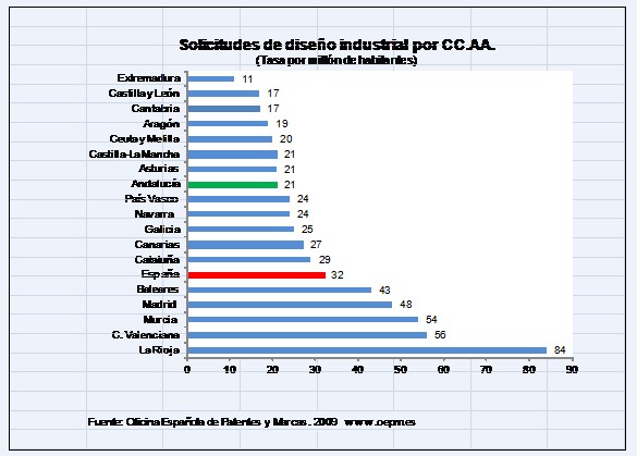 44. Por habitante, Andalucía está entre las últimas comunidades de España por solicitud de patentes y modelos.