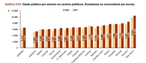 41. Andalucía, a la cola de España en gasto educativo por alumno.