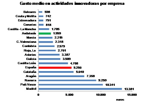 46. Andalucía, de los últimos en gasto en innovación por empresas y por debajo de la media nacional.