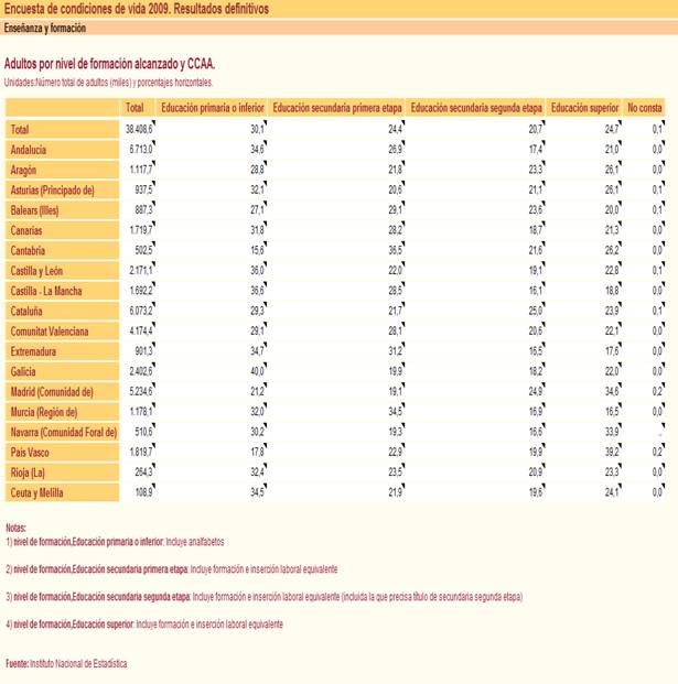 Andalucía se destaca en adultos con educación primaria y secundaria, primera etapa, pero se hunde luego.