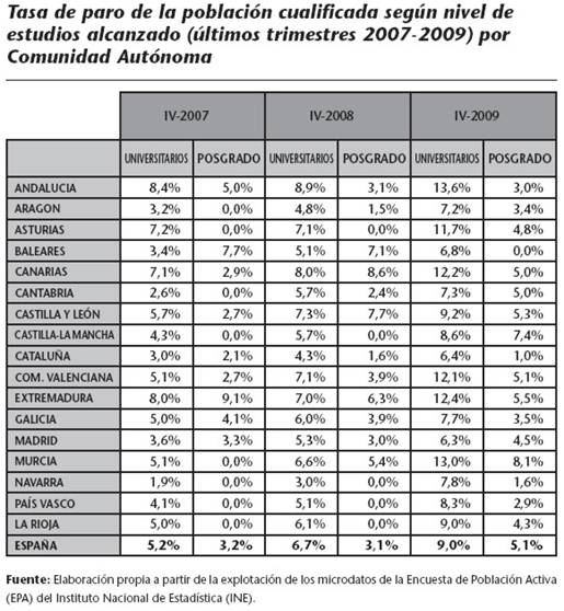 48. Andalucía, a la cabeza del paro universitario en España y con déficit de postgraduados.