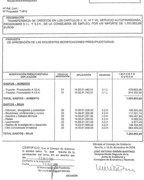 En este sentido, Griñán firmó de su puño y letra una modificación de los presupuestos andaluces de 2008 destinada a incrementar el denominado como "fondo de reptiles" con el objetivo de financiar el Plan Bahía Competitiva.