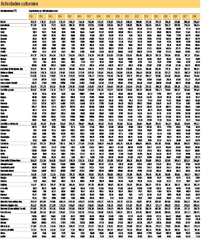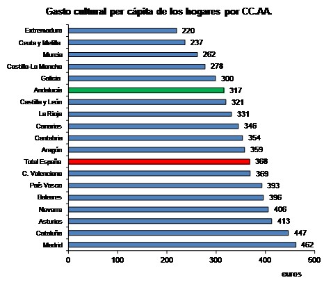 65. Andalucía, por debajo de la media nacional en gasto en cultura per cápita de los hogares.