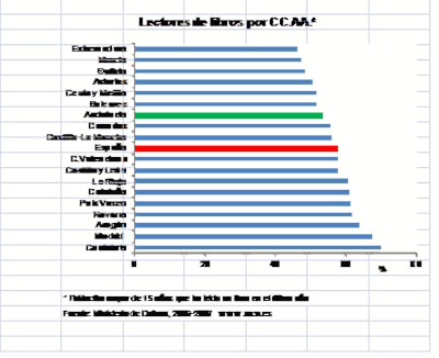 66. En lectores de libros, Andalucía está por debajo de la media nacional.