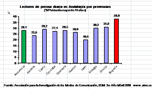 68. Andalucía, diez puntos debajo de España en lectores de prensa diaria.